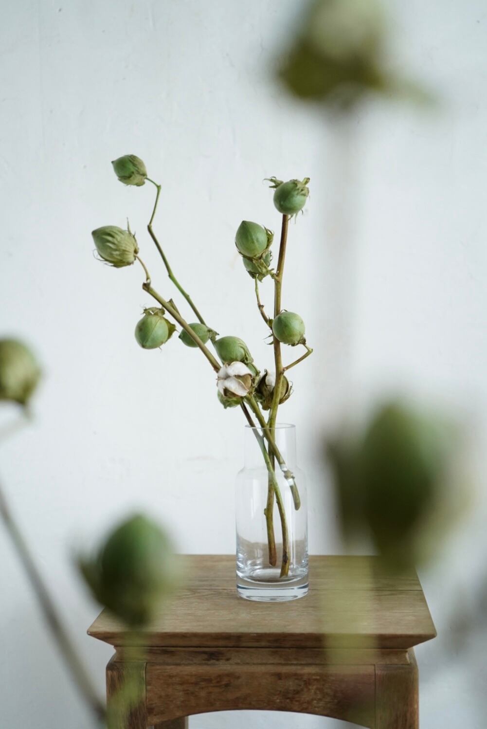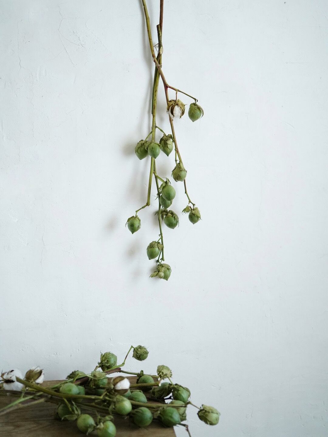 写真2枚目、3枚目、6枚目が3本のコットンツリーを生けたものになります。