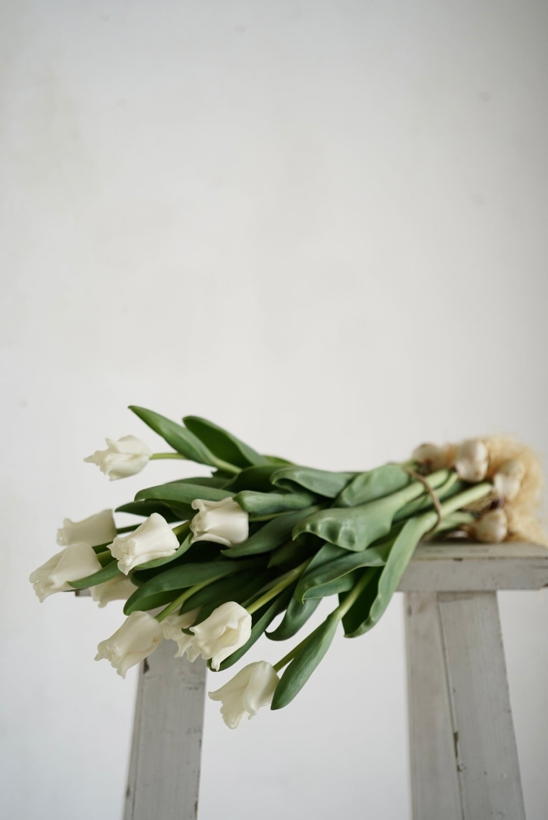 ▫️チューリップの品種により葉の大きいもの、垂れ下がるものが御座います。生ける際に葉を少し整理しますと生けやすくなります。
